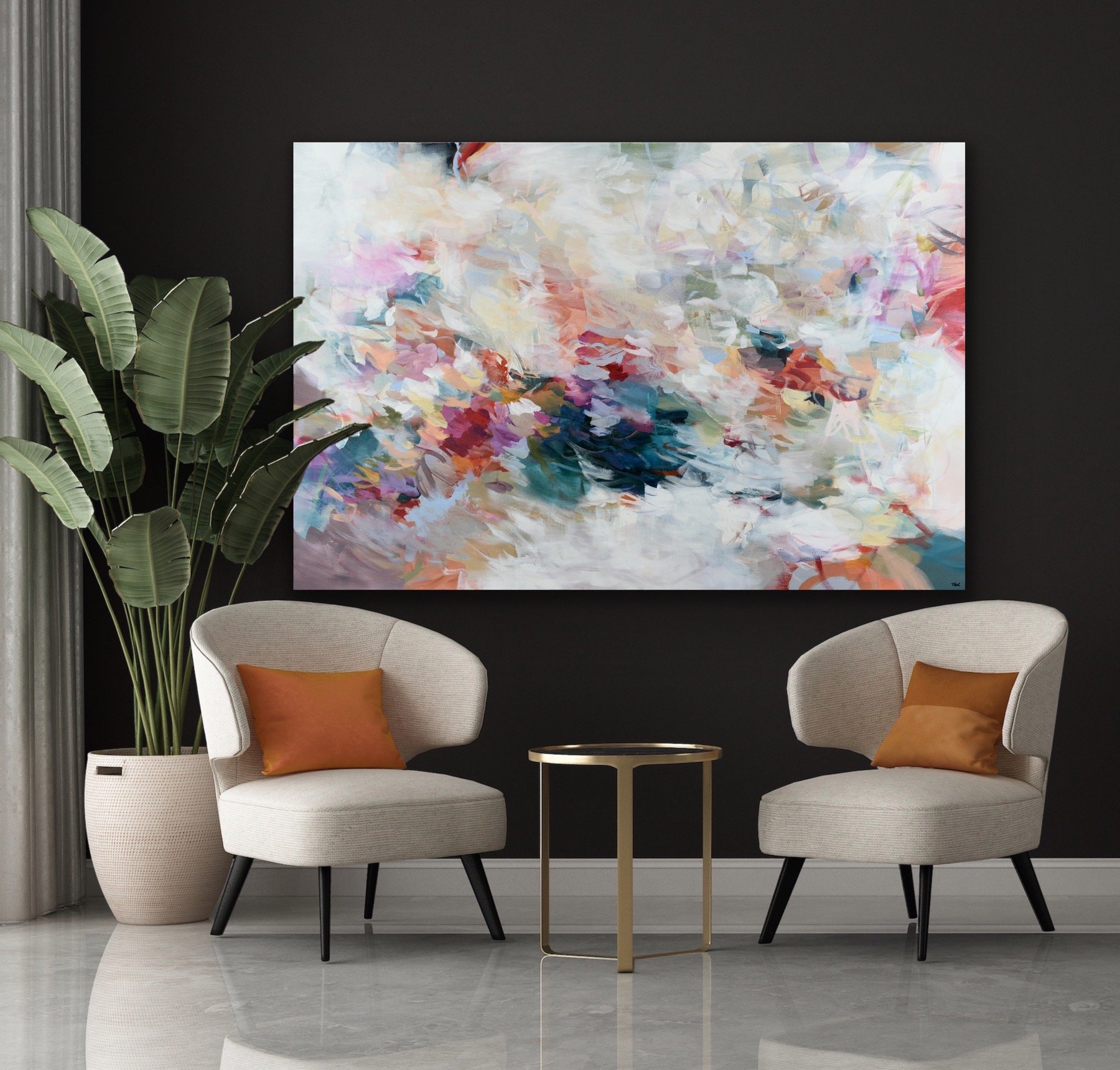“I paint to enhance people’s lives by creating nature-based large abstract wall art. For me, painting is the most life affirming thing to do.”
